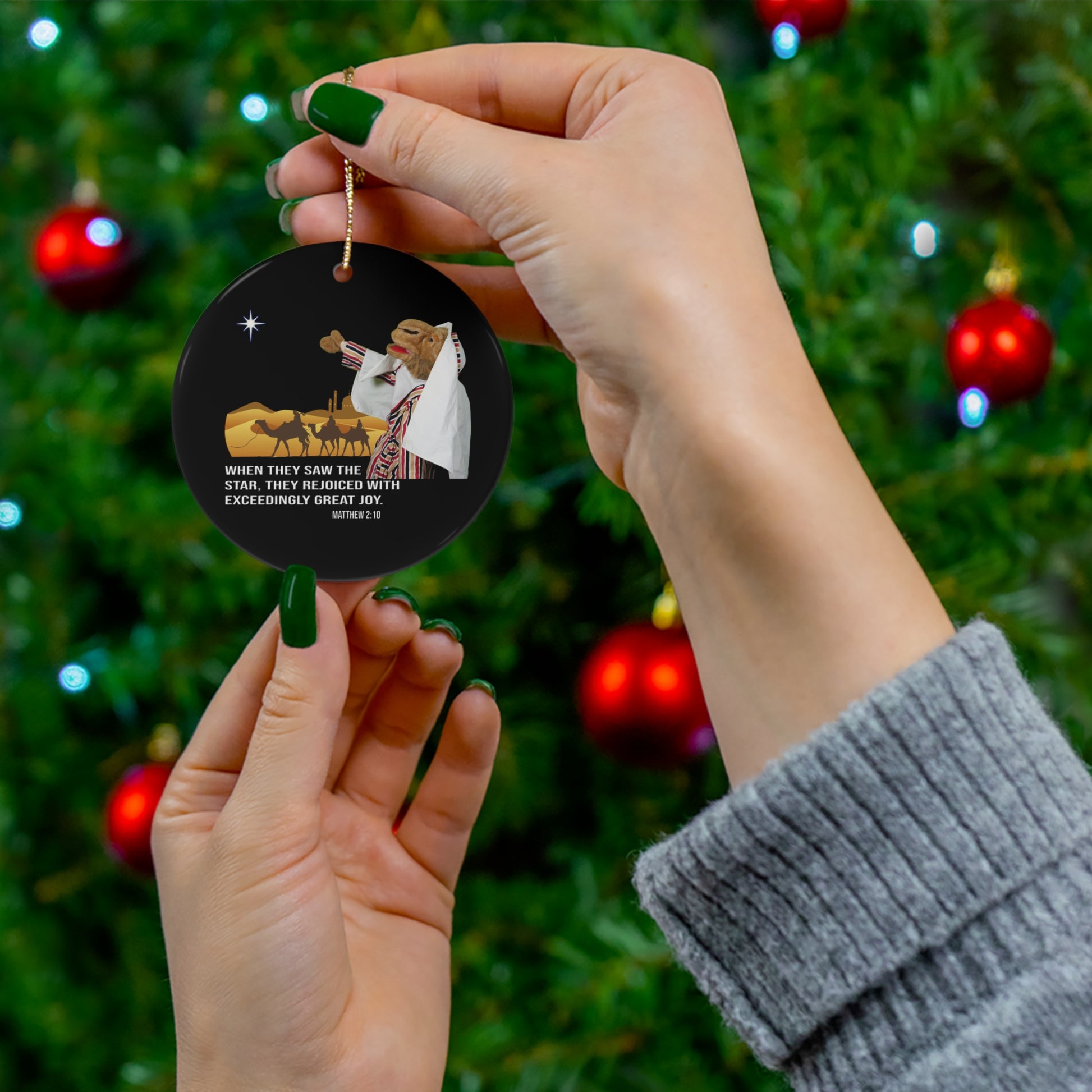It may have been a long journey through the desert in search of the Messiah, but there was no sadness among these travelers! Ornaments available in 2 shapes.